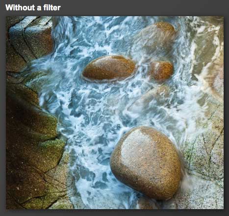 By greatly extending exposure times the 10 stop Big Stopper has the effect of allowing anything that is moving in your image to become blurred or ghost like, for example, clouds, waterfalls, rivers, and the sea.